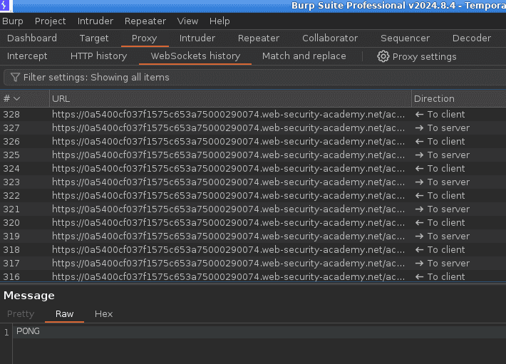 To demonstrate a Cross-Site WebSocket Hijacking exploitation with Burp, let’s use the dedicated PortSswigger Academy challenge.